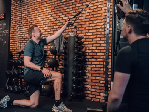 Personal training in kleine groepen van maximaal 4 personen. Elke sessie begeleid door een vaste coach die je kent, je programma bewaakt en je blijft pushen.